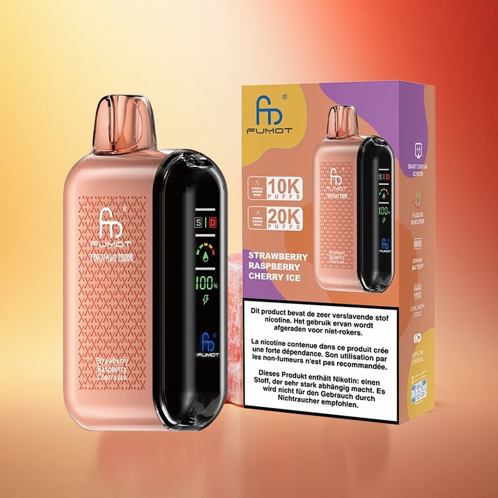 Fumot Tornado 20000 Puffs Jagoda Malina Češnja Led z Dvojno Mrežo in 20ml E-tekočine